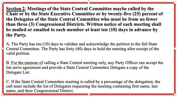 The Delegates MUST be able to call a meeting without approval by the "Party" as defined by the bylaws: The Republican Party of Minnesota. As "Party lawyers" have engaged in word-smithing to limit the power of the SCC, it is time the SCC responded in like manner: The Officers or State Exec would need to call a SCC meeting to call a State Convention Our